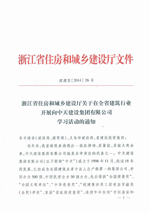 《浙江省住房和城乡建设厅关于在全省建筑行业开展向AG公司建设集团有限公司学习活动的通知》